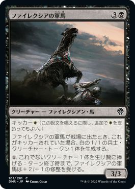 詳細を全部見る(DMU 101)《ファイレクシアの軍馬/Phyrexian Warhorse》[黒][C][JP][日本語版]